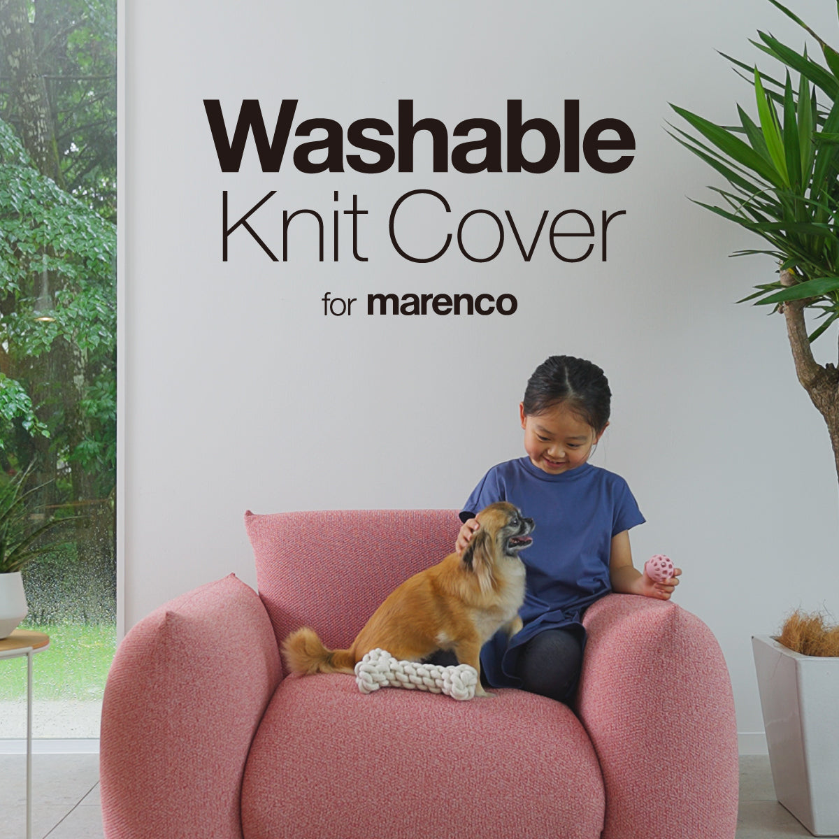 自宅で洗えて簡単にかけ替えられる、ソファMARENCO専用のニットカバーを発売。ニュアンスのある3色展開です。