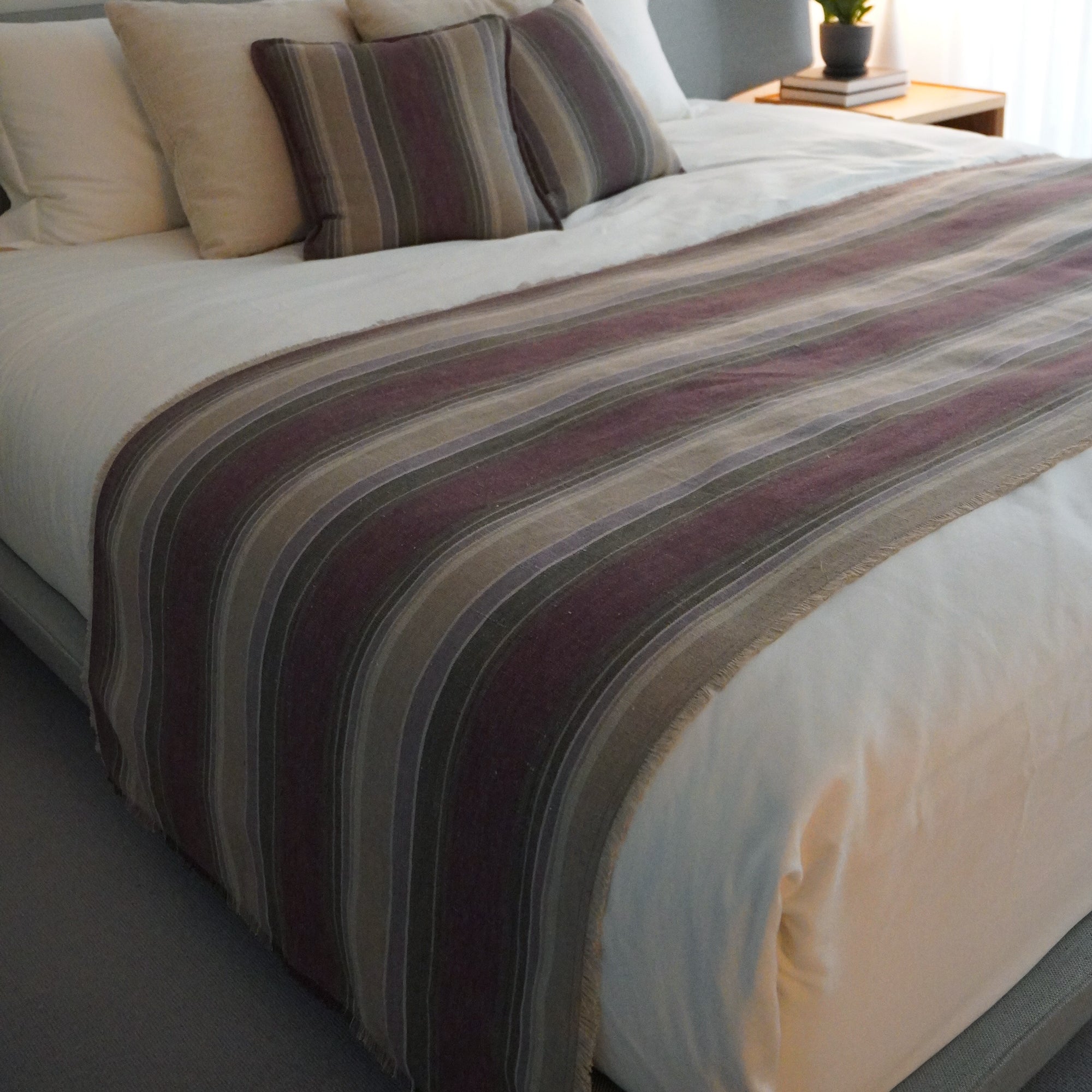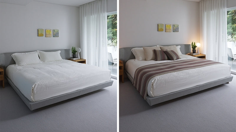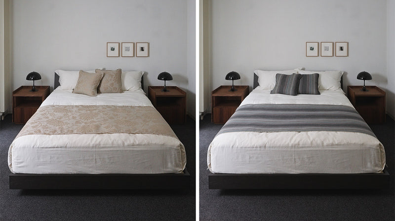春夏は明るい色味を、秋冬は落ち着いたトーンのベッドスプレッドを。大きな模様替えが難しい寝室も、気軽なイメージチェンジが叶います。