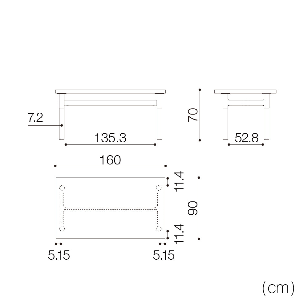 W.160 D.90 H.73 T.5 脚間寸法135(cm)