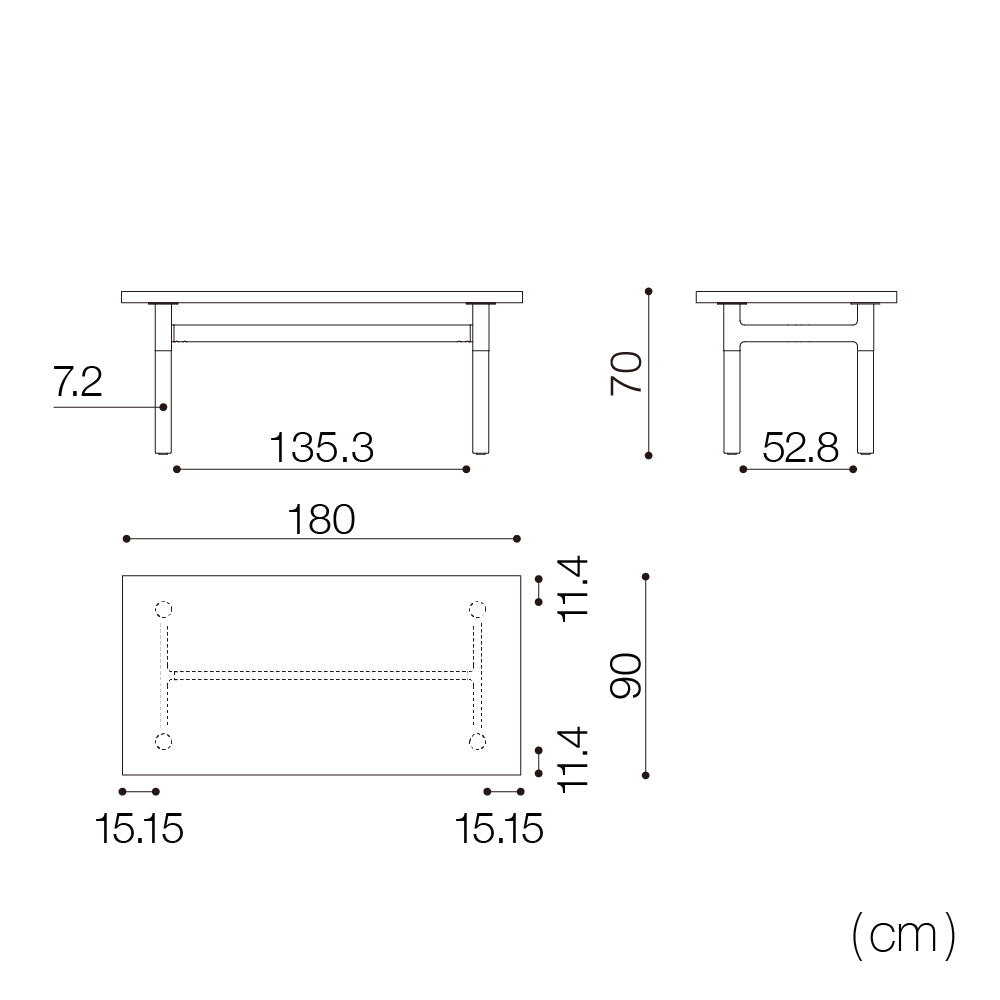 W.180 D.90 H.73 T.5 脚間寸法135(cm)