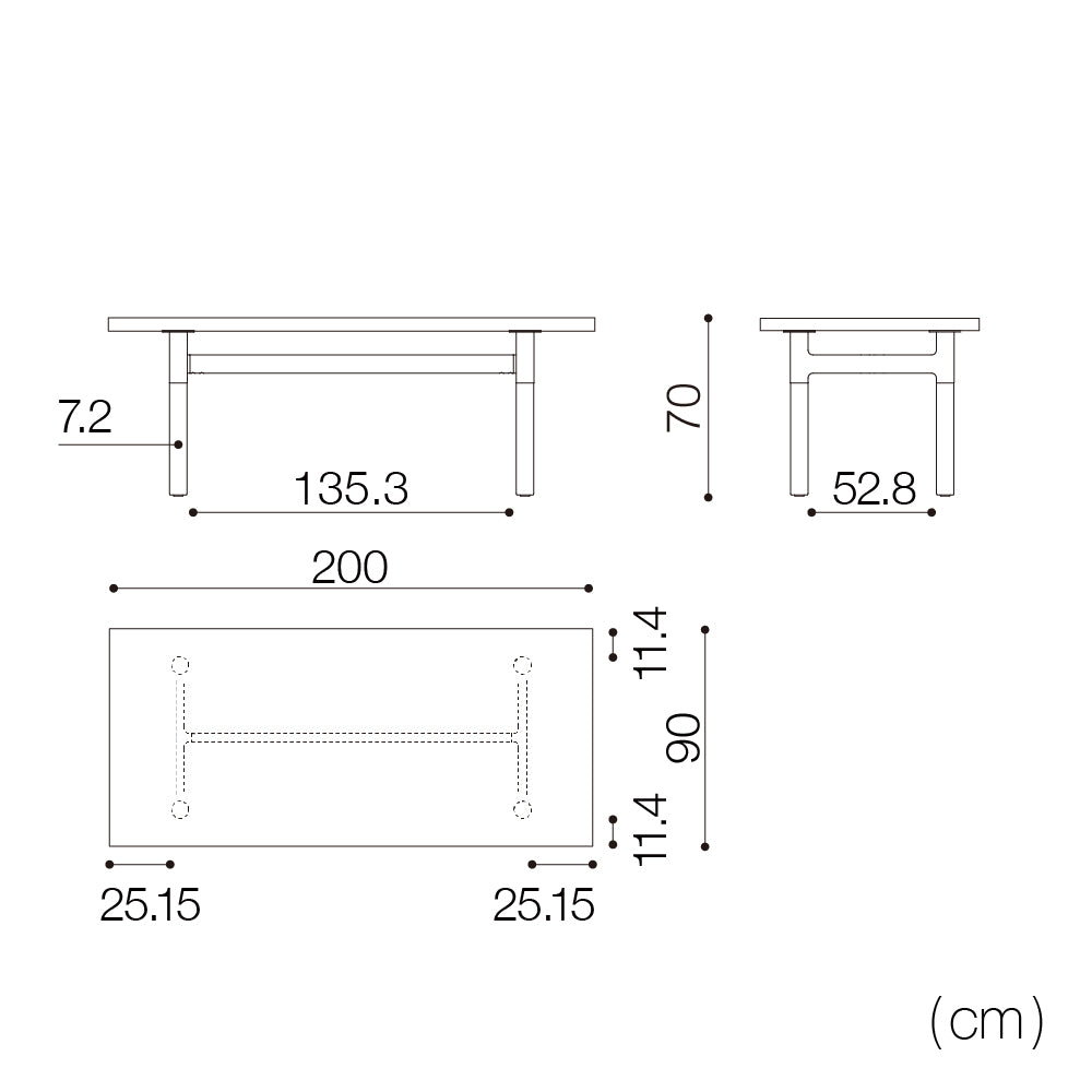 W.200 D.90 H.73 T.5 脚間寸法135(cm)