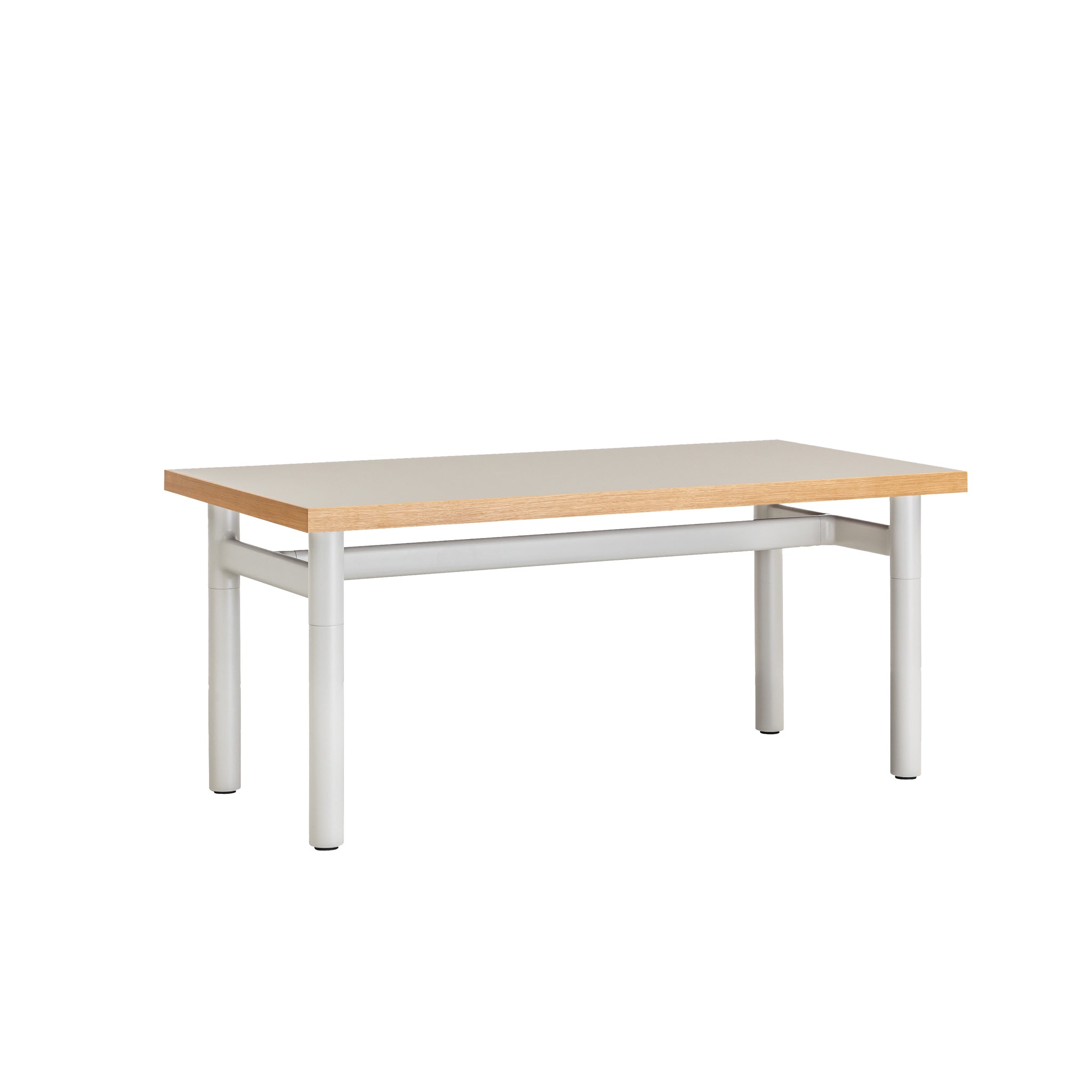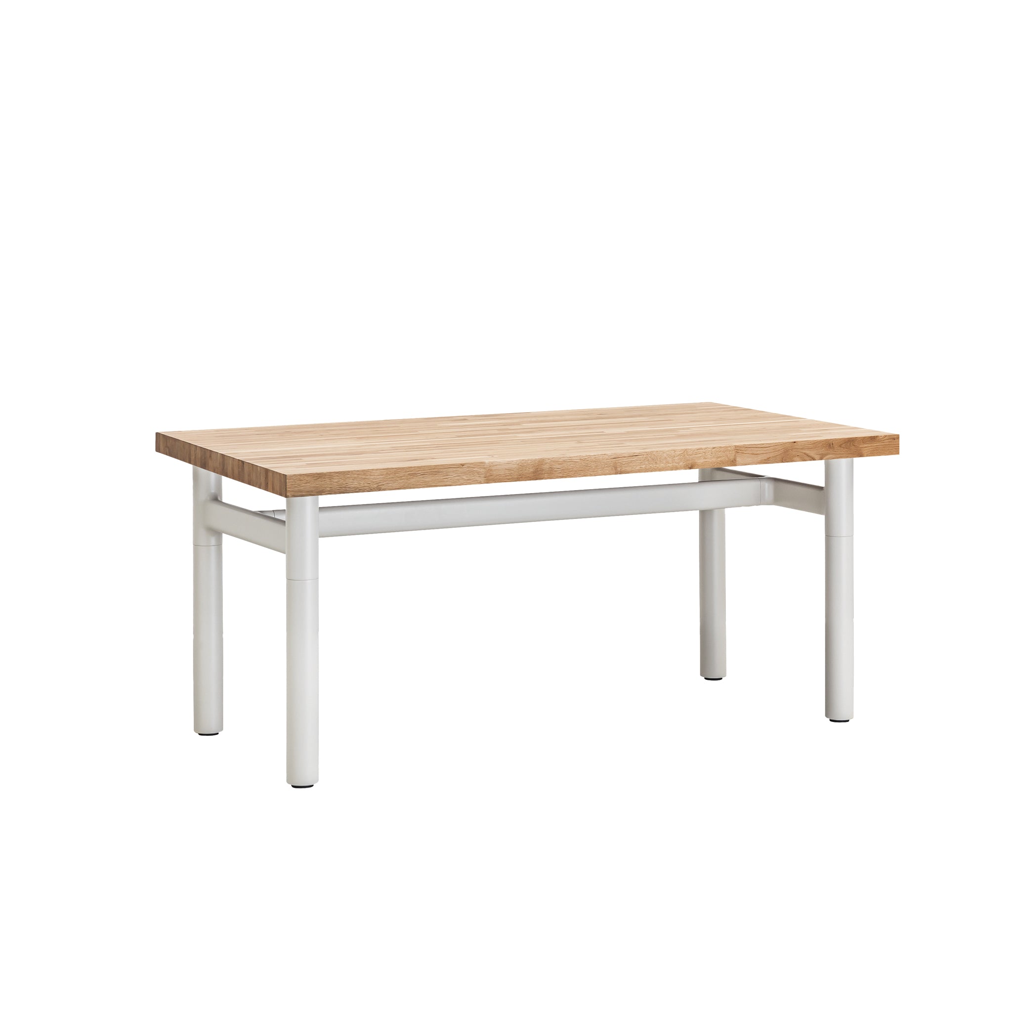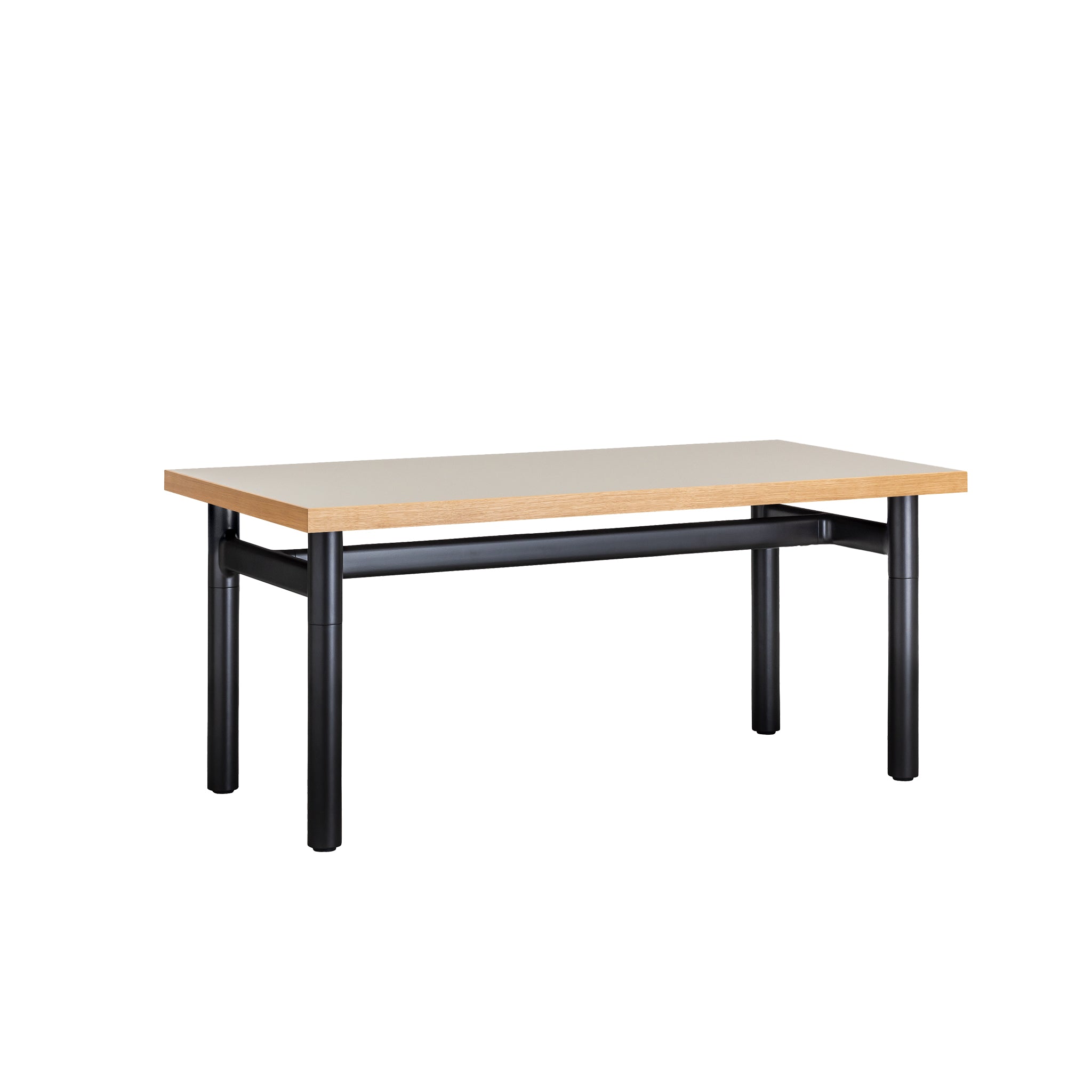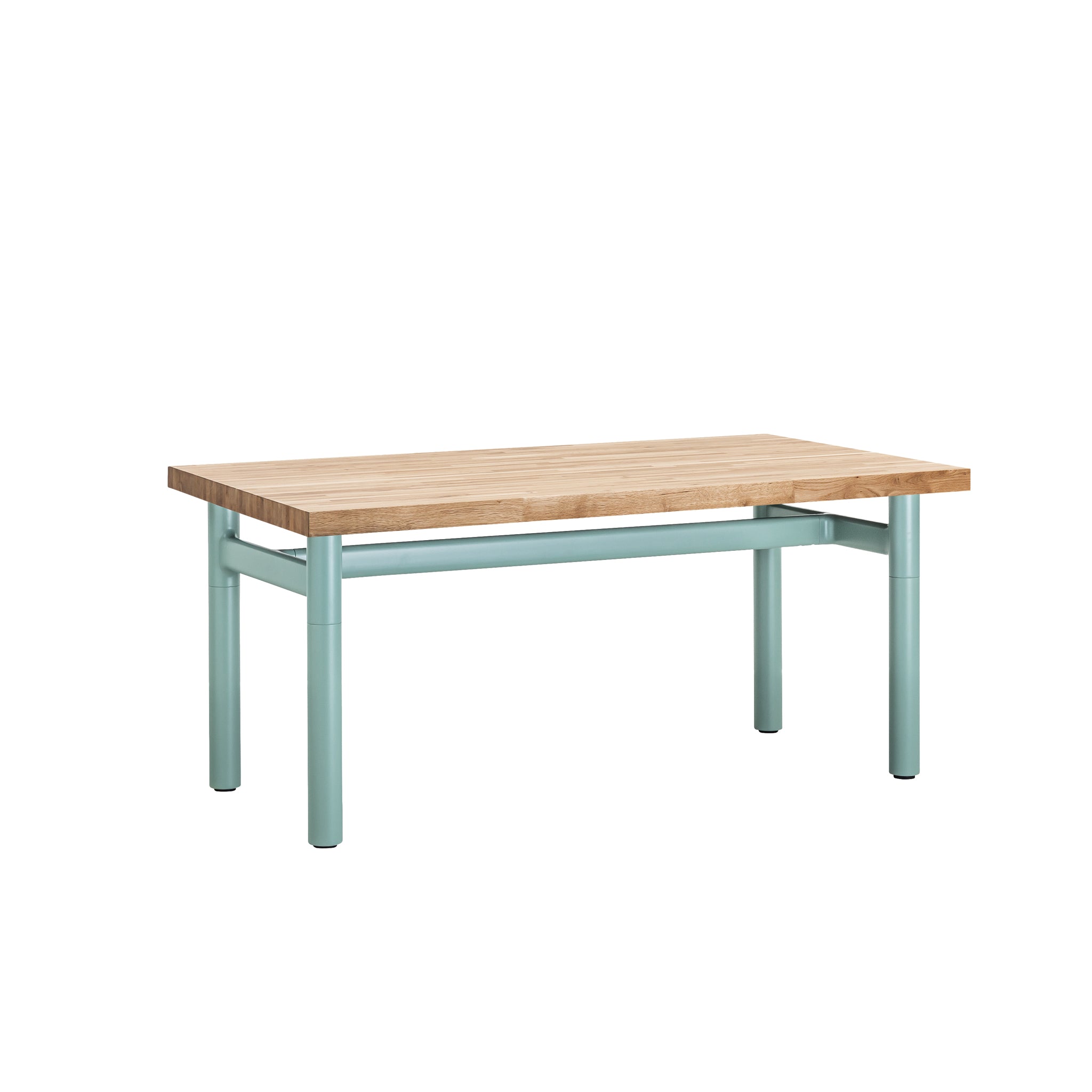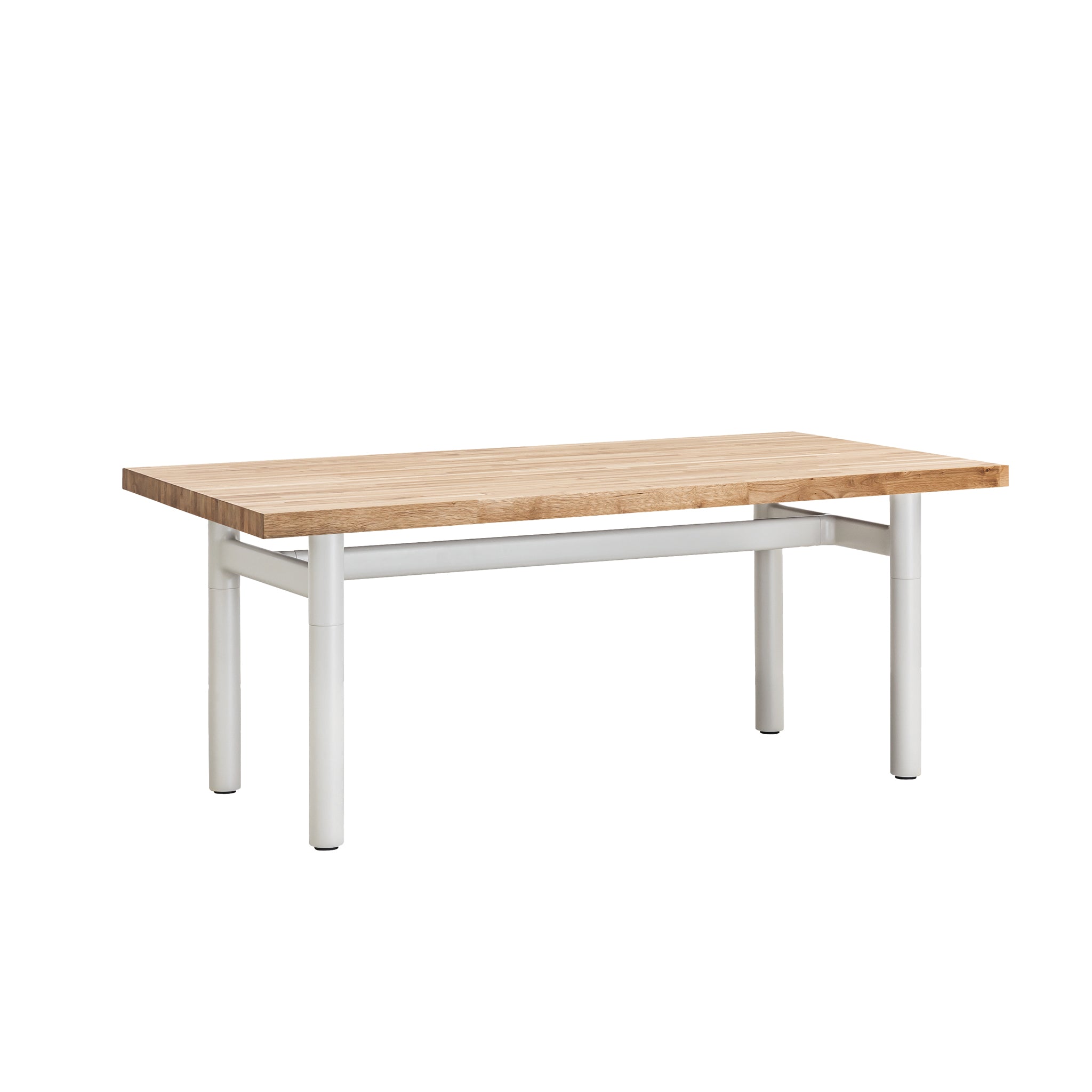 天板素材は2種類。木の端材をつなぎ合わせた集成材は、1点ごとに異なる豊かな表情が楽しいサステナブルな素材。FENIXは指紋がつきにくく、アルコール消毒もできる高機能素材。ダイニングはもちろんワークスペースにも適しています。