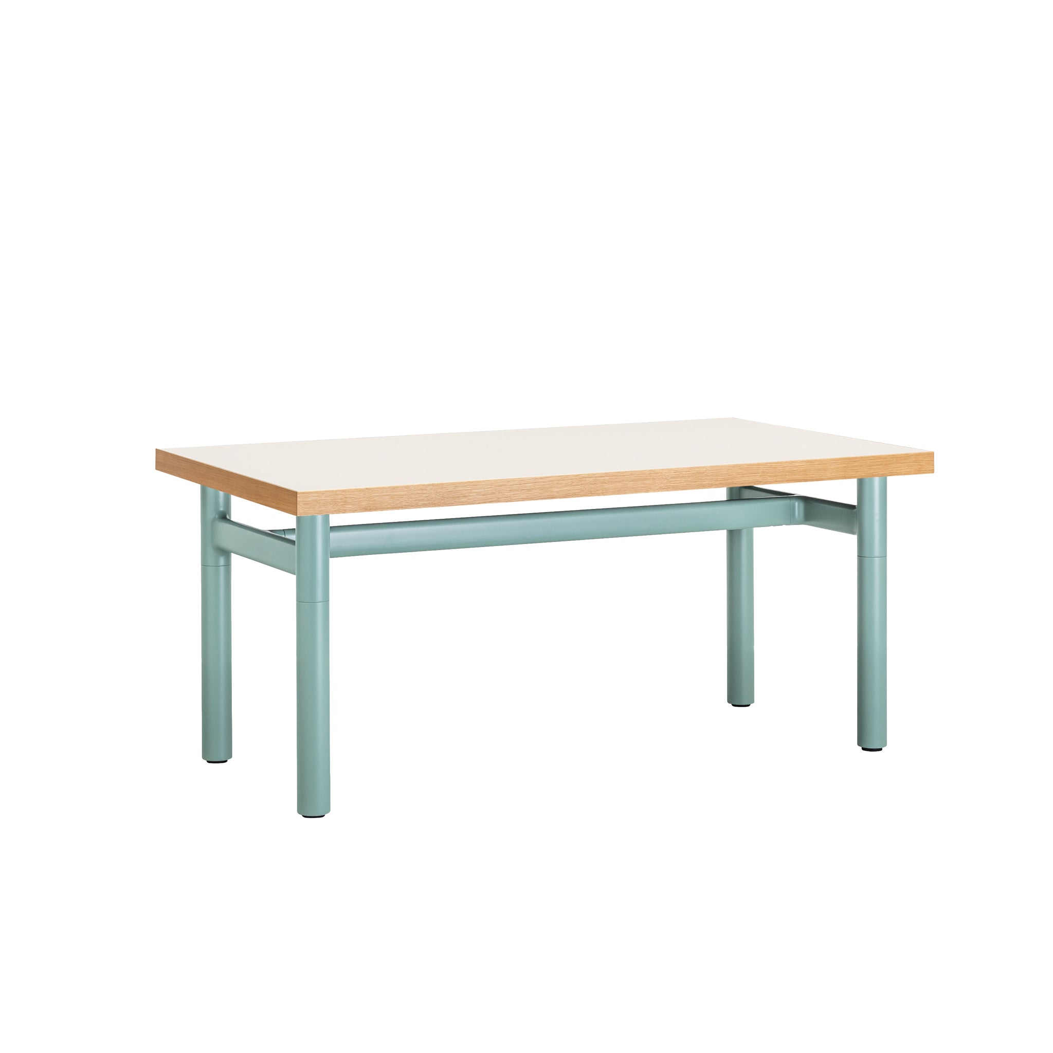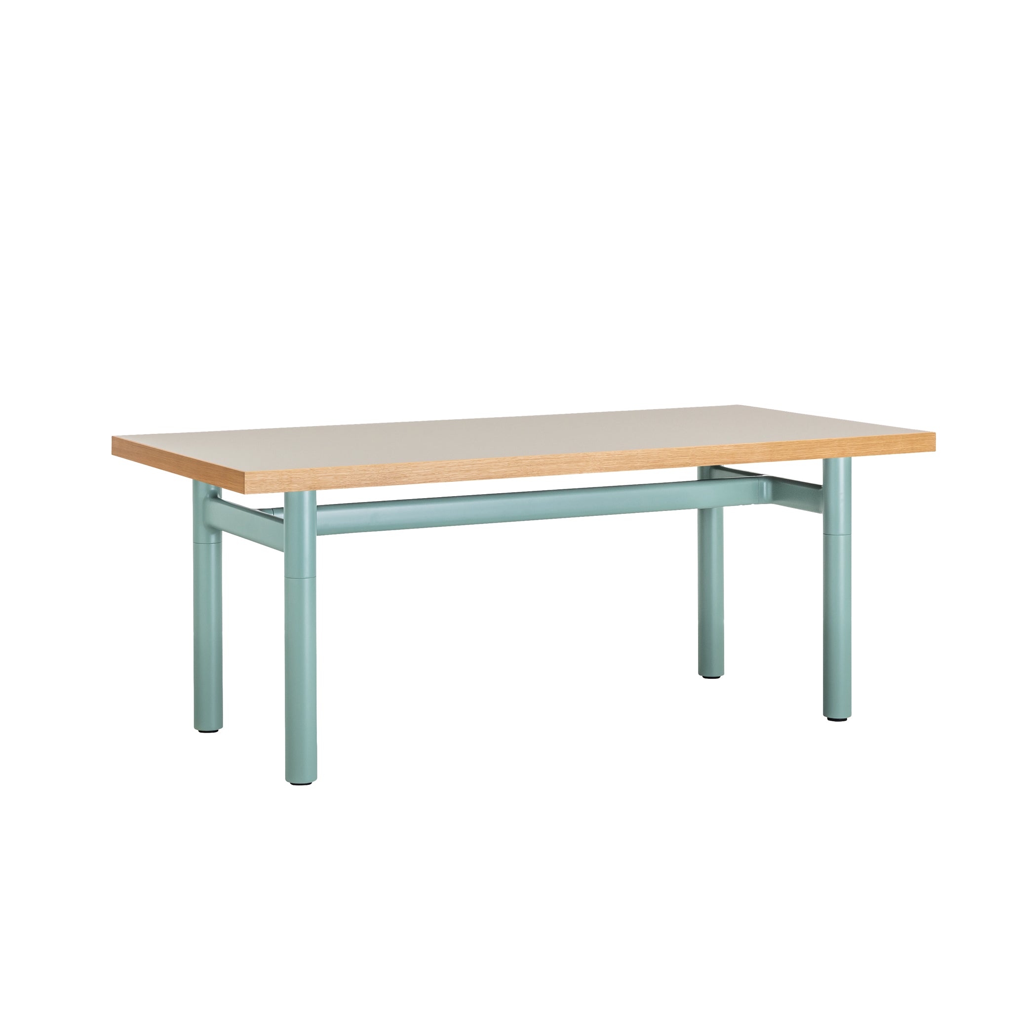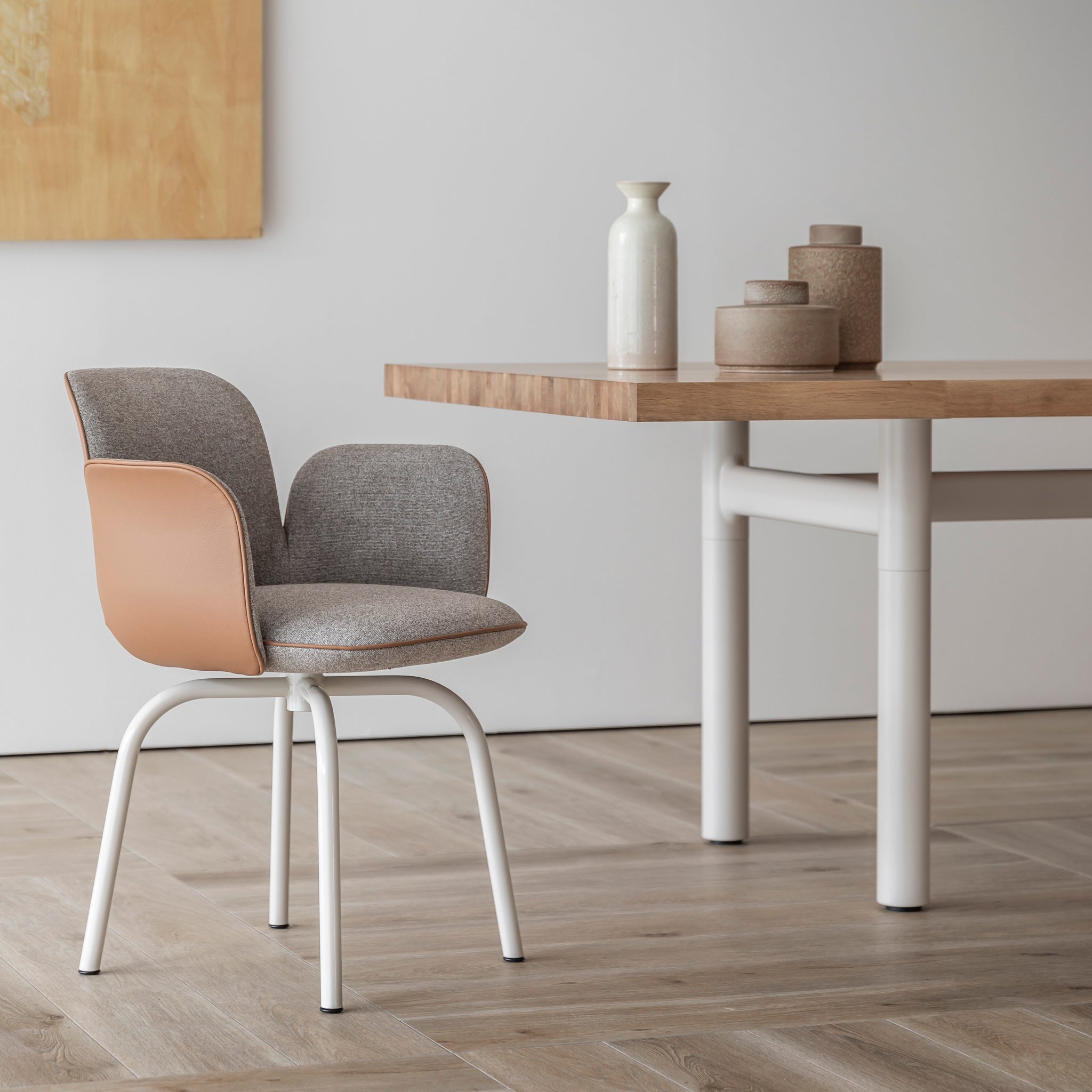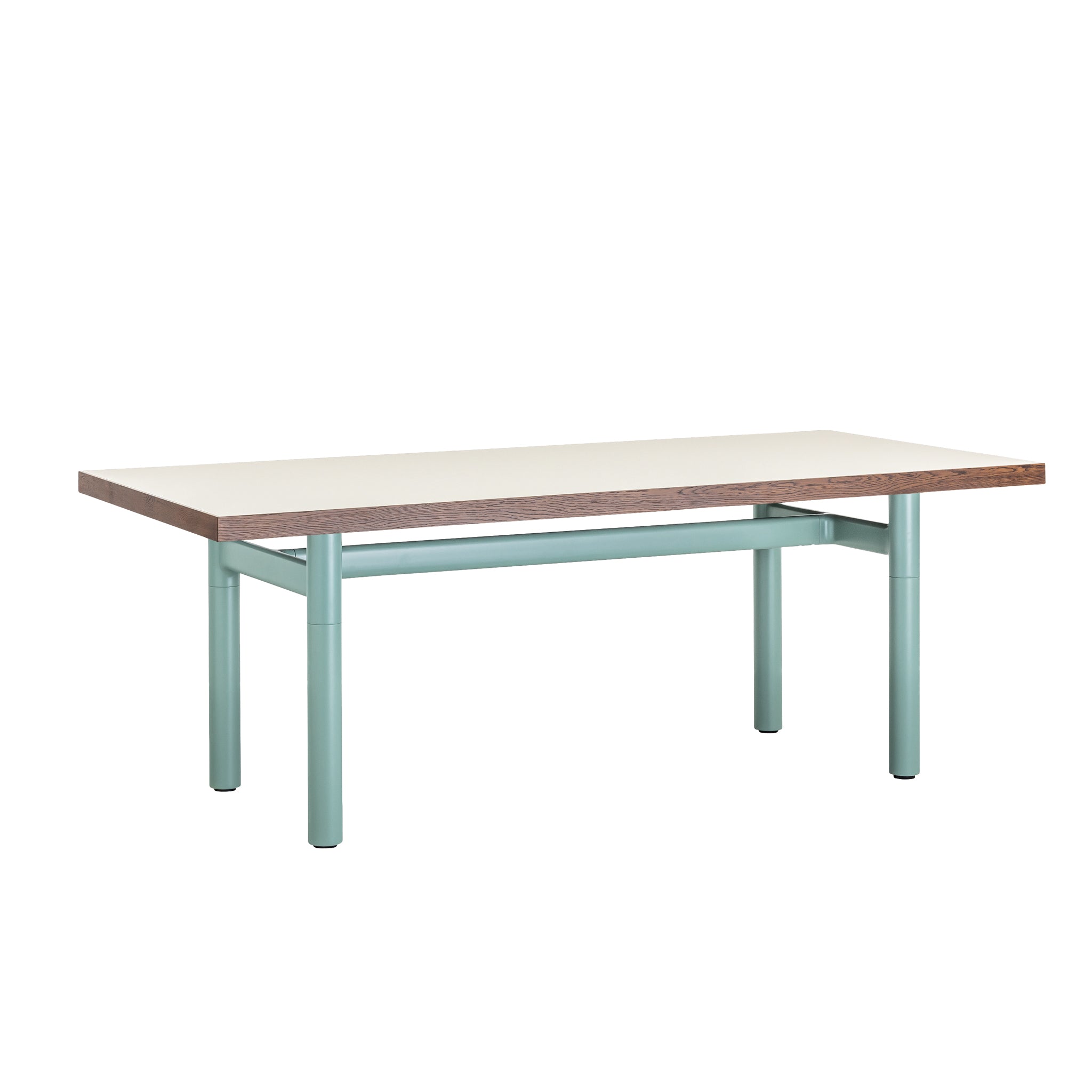 アルミダイキャストの脚部は落ち着きのあるダークブラウンとアイボリー、アクセントになるグリーンの3色。天板素材との組み合わせによって印象が変わり、様々な空間にフィットします。
