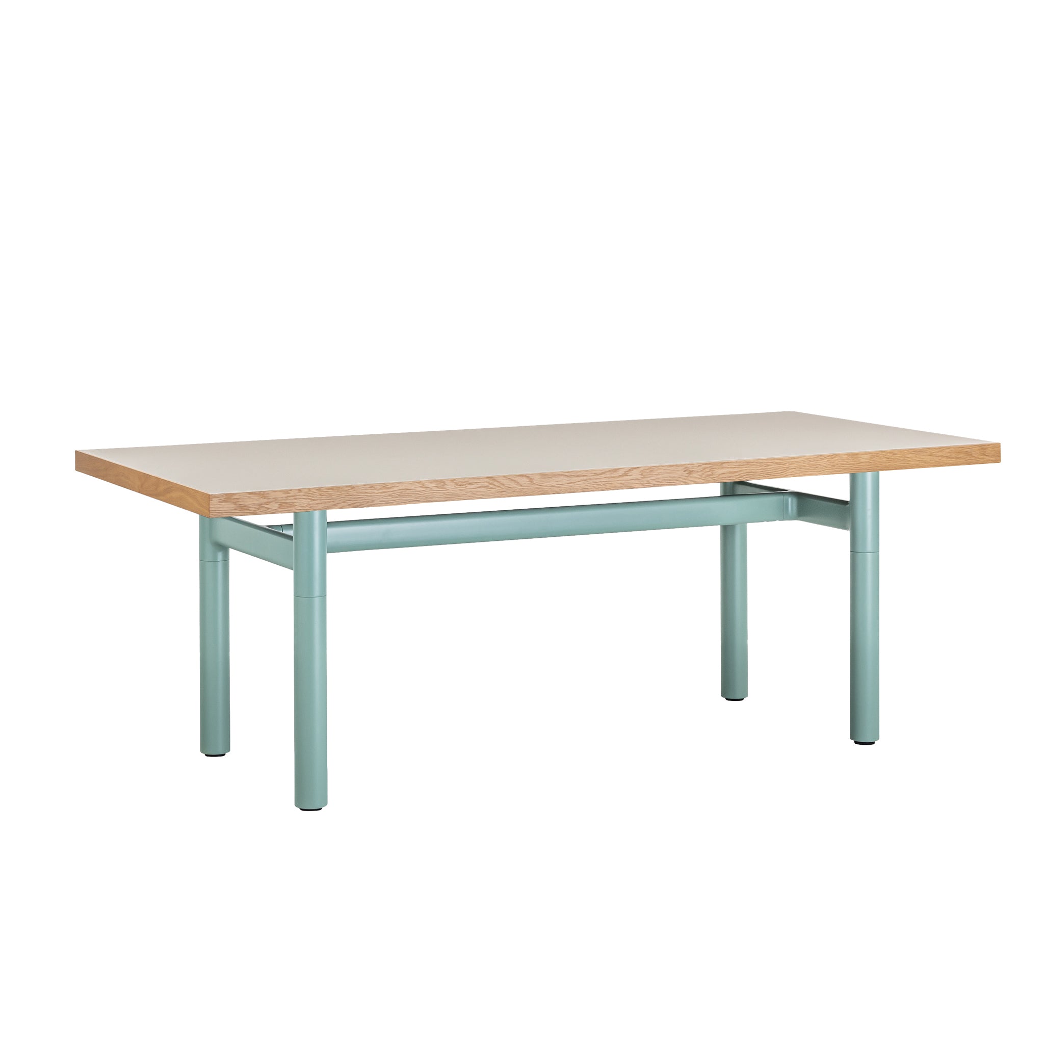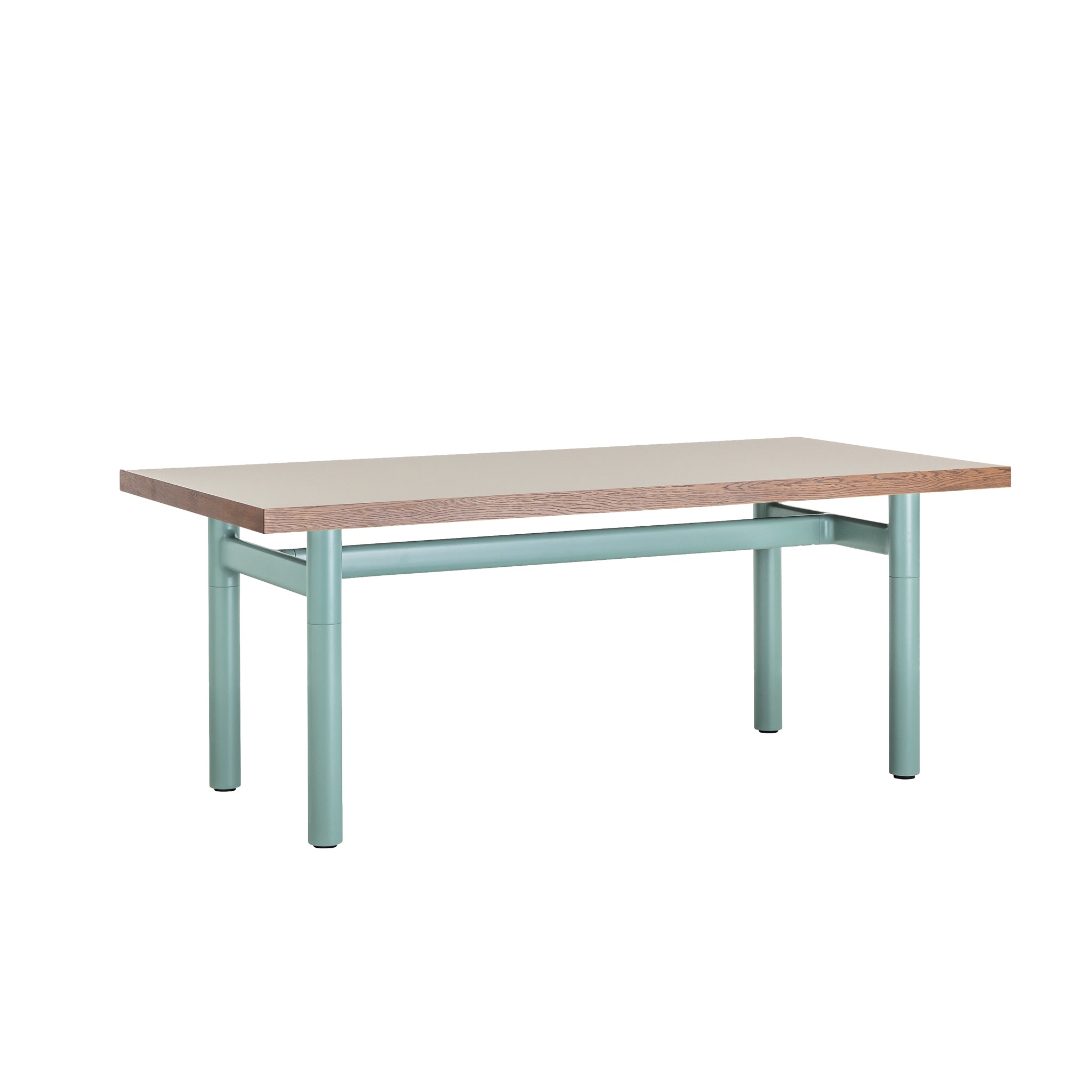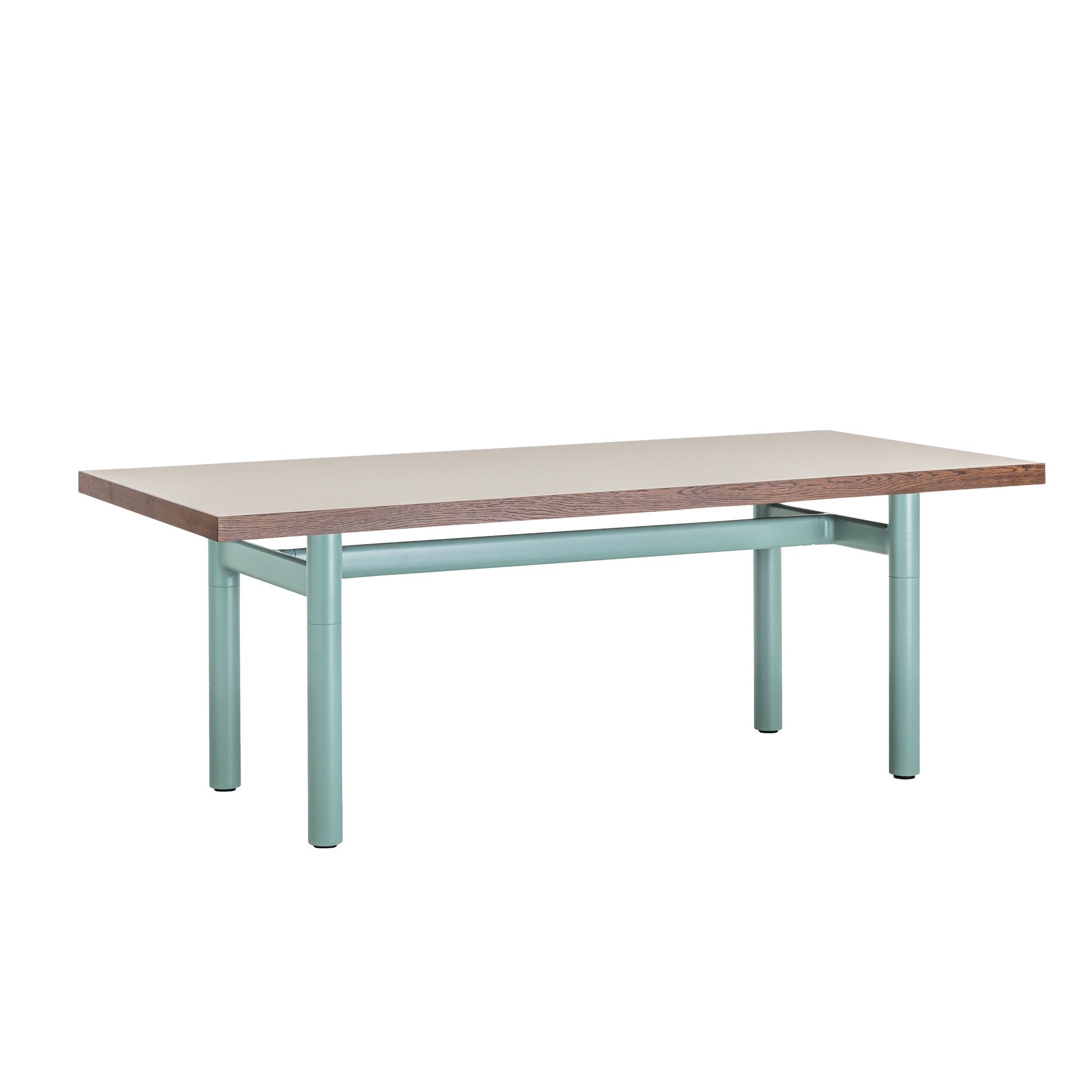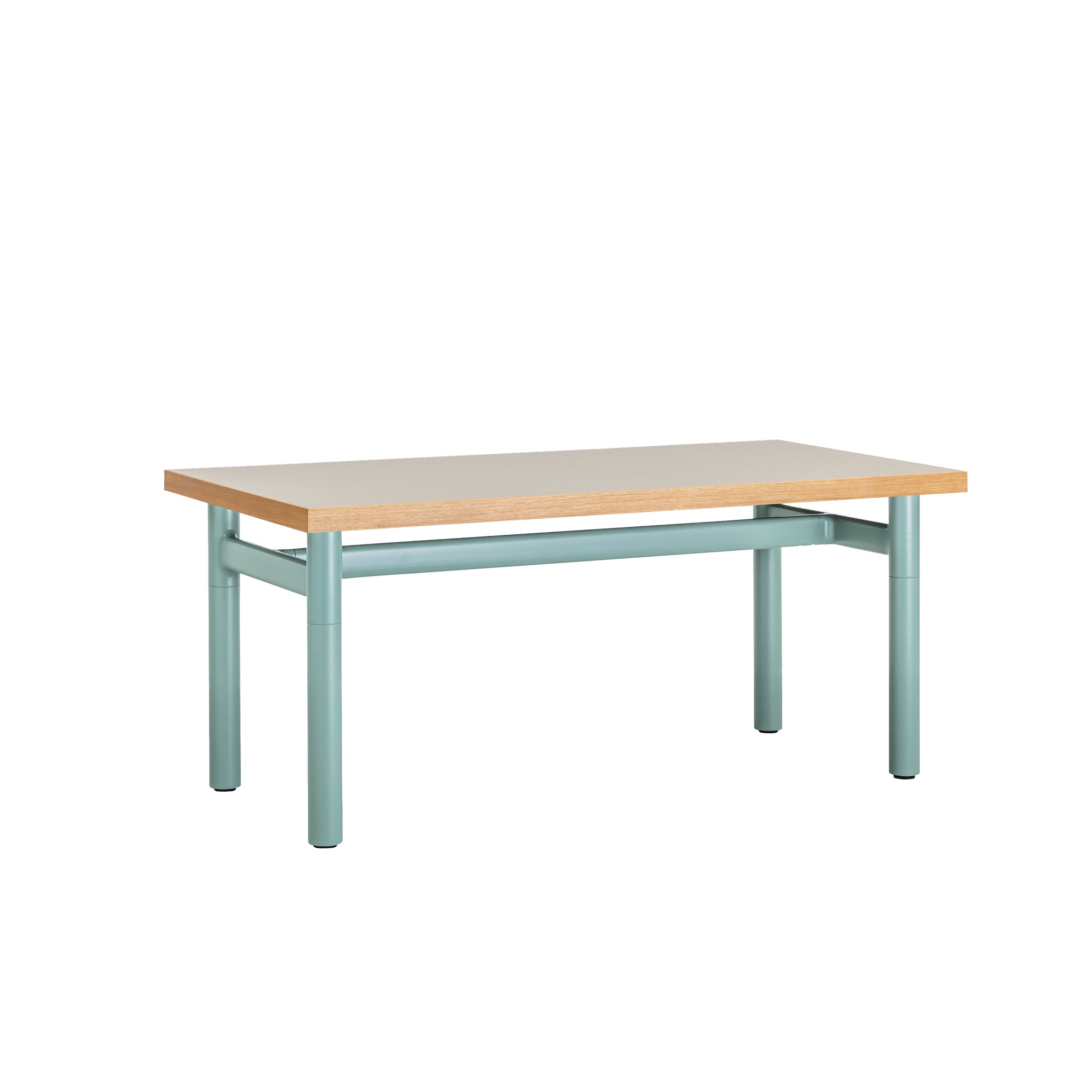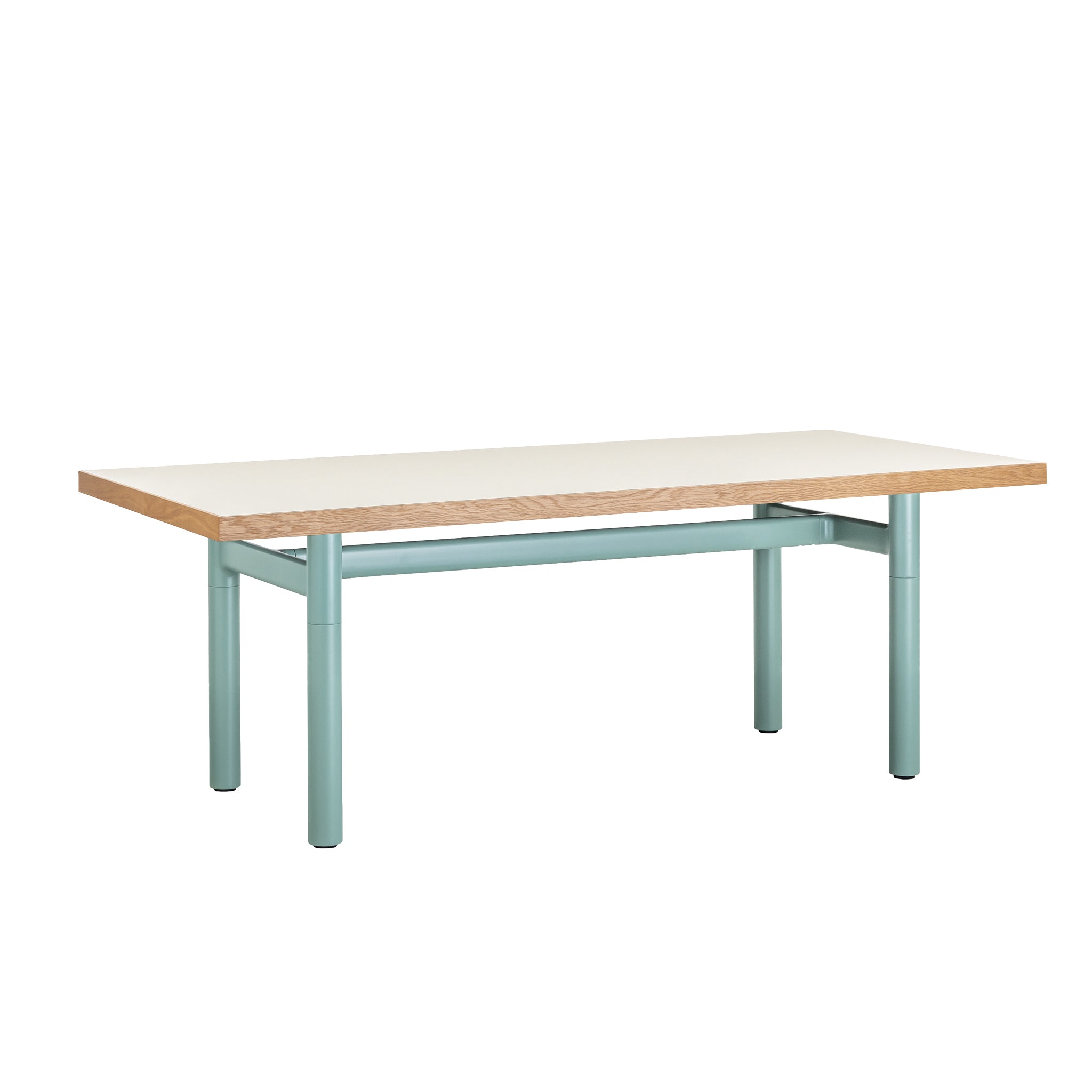 アルミダイキャストの脚部は落ち着きのあるダークブラウンとアイボリー、アクセントになるグリーンの3色。天板素材との組み合わせによって印象が変わり、様々な空間にフィットします。