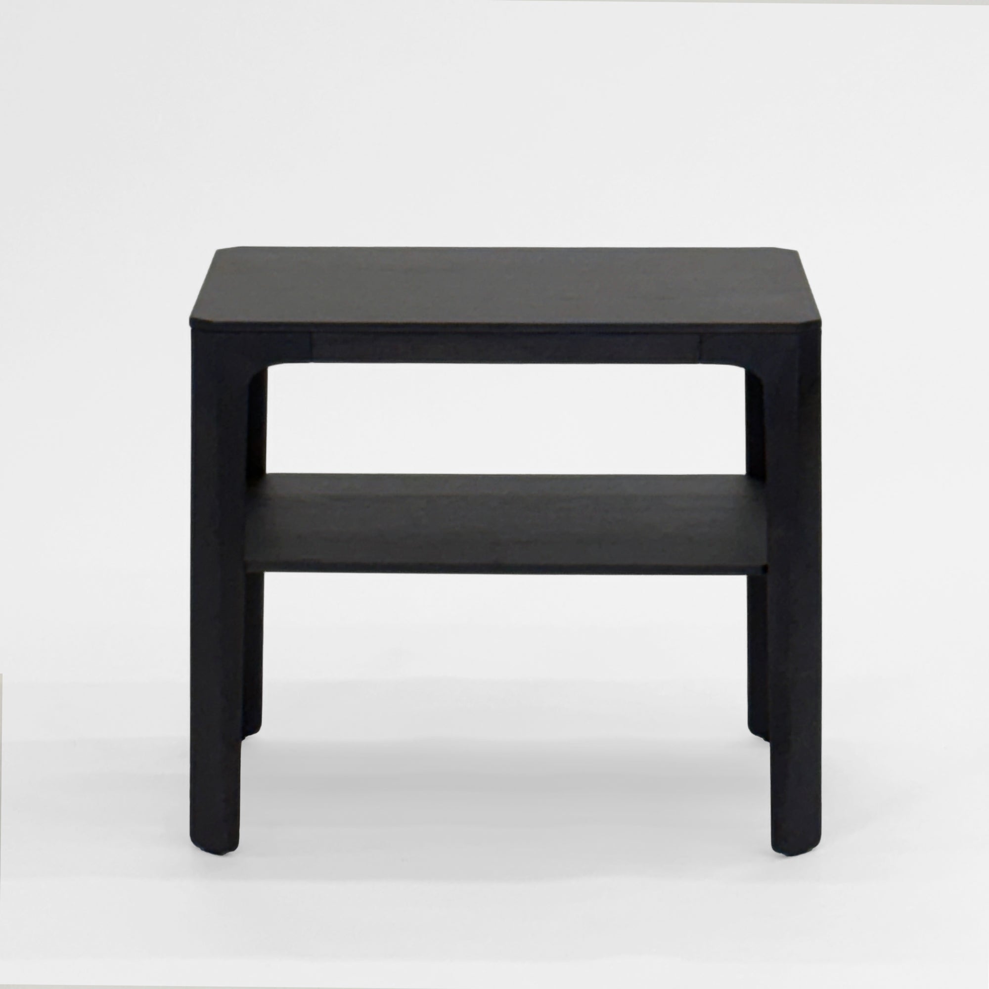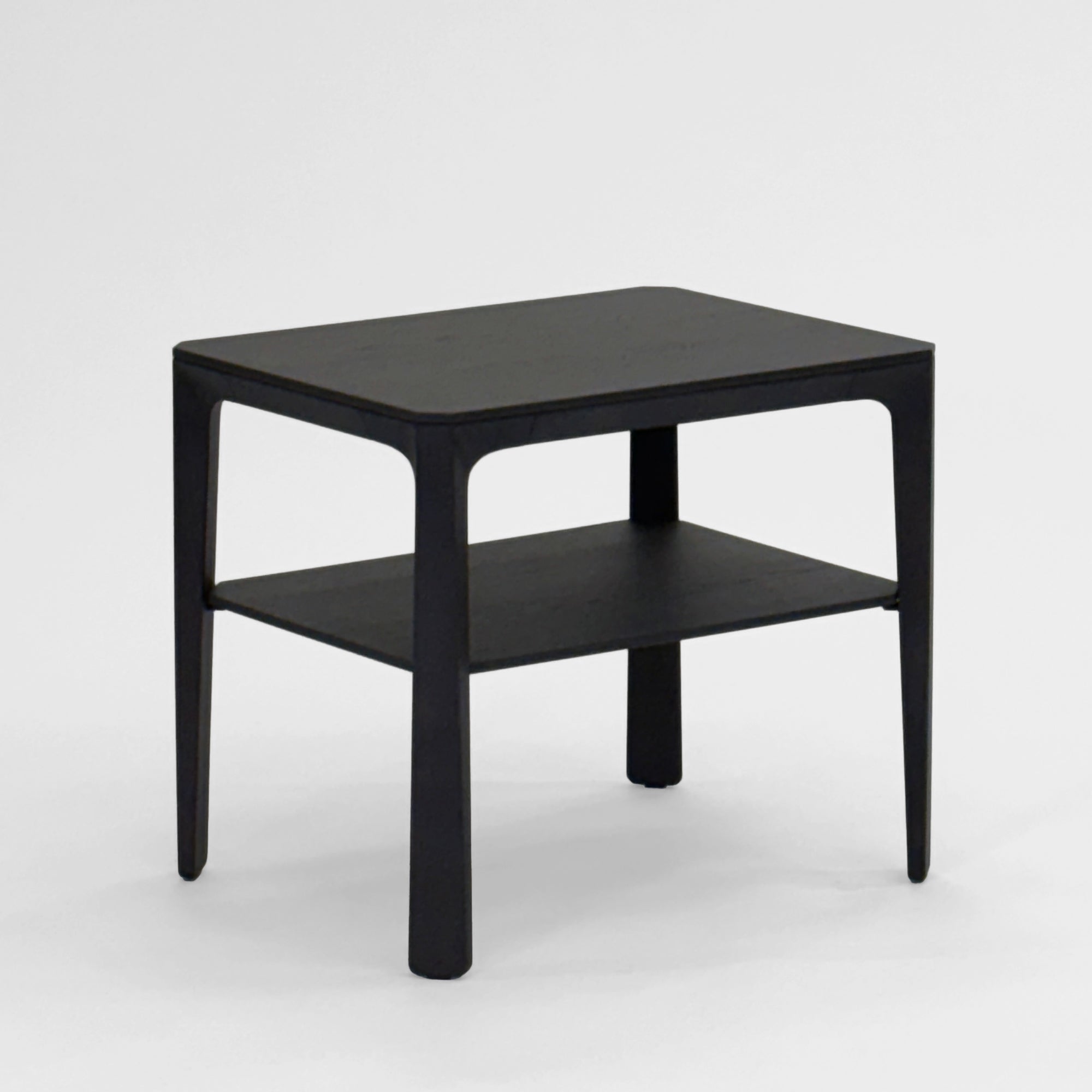 無垢材を削り出した脚部が美しい、繊細な表情の木質テーブル。